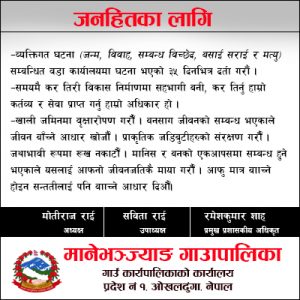 काठमाडौं । स्वास्थ्य तथा जनसंख्या मन्त्रालयले सार्वजनिक बिदाको अवधिमा...
