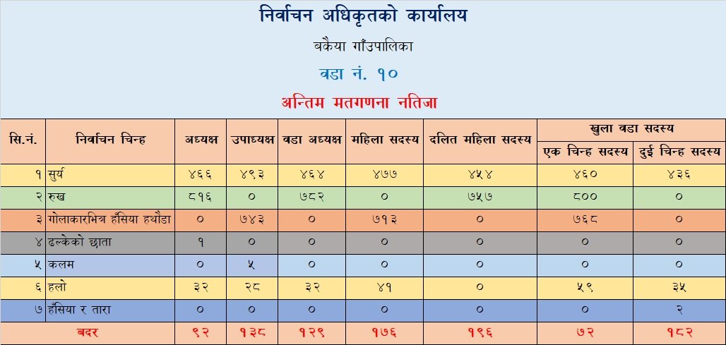 मकवानपुरको बकैया गाउँपालिका १० मा महिला वडाध्यक्षमा वाईवा विजयी