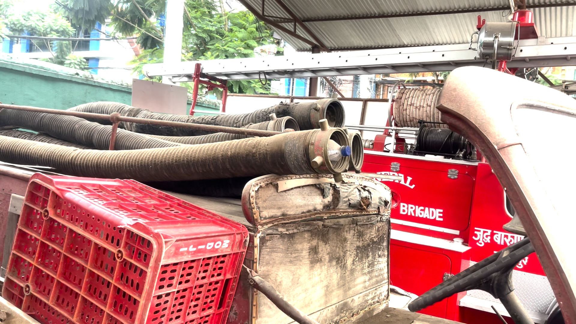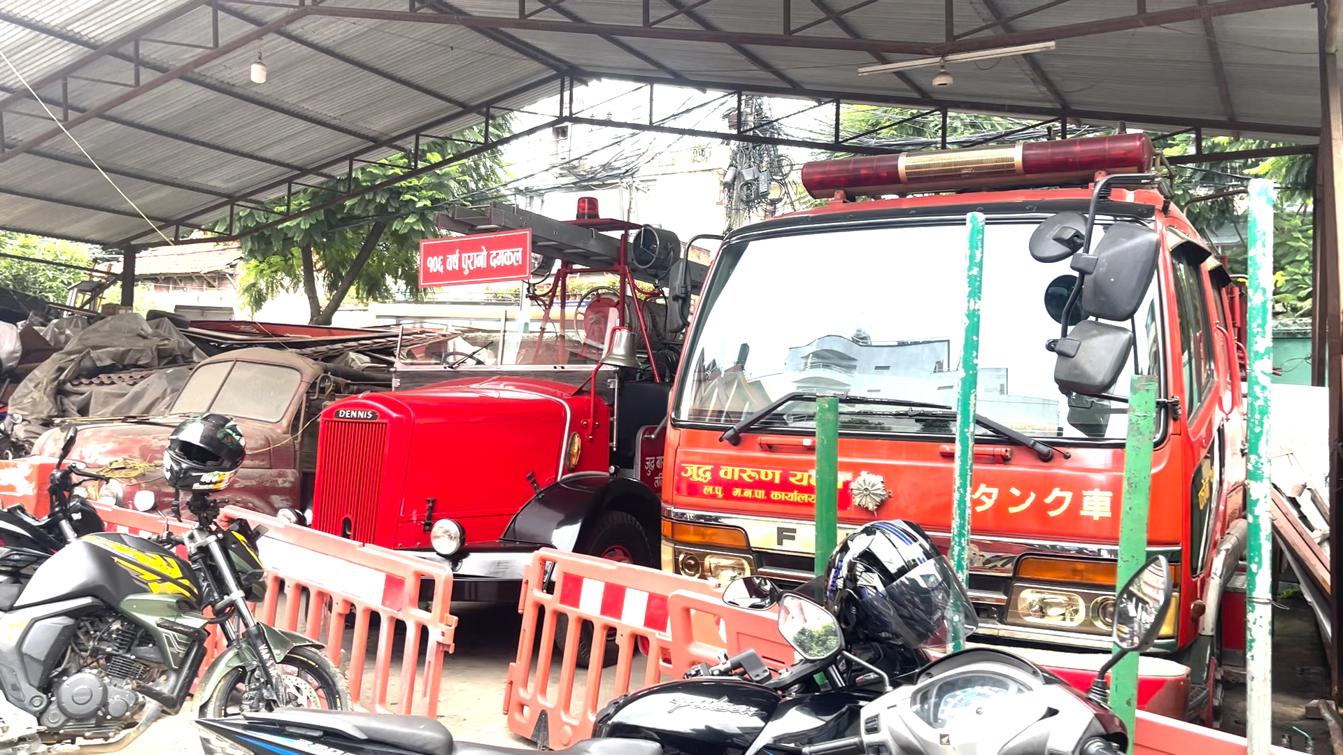 कमाण्डर ठकुरीका अनुसार, अहिले कार्यालयमा पाँचवटा दमकल ट्रक छन । तीमध्ये तीनवटा ठूला फायर ट्रक, एक वटा पानी ट्यांकर, र दुई वटा मिनी दमकल ट्रक छन् । ती दमकलमा २५०० लिटर पानी र ३०० लिटर केमिकल फोम अट्छ । अहिले त झन ललितपुर महानगरमा दुईवटा अत्याधुनिक जापानी फायर ट्रक पनि आएका छन् — जो एकैचोटि आधुनिकता, गति, र सुरक्षा लिएर आएका छन् । ती ट्रकले एक मिनेटमा टावर जत्रो अग्लो भवनमाथि पनि पानी फाल्न सक्छन् । तर, सबैभन्दा अनौठो कथा छ — १०६ वर्ष पुरानो दमकलको, जुन अझै जिउँदो छ । ‘मान्छे मर्छन्, तर तिनीहरूले बनाएका संरचनाले इतिहास बाँचिरहन्छ,’ कमाण्डर ठकुरी भन्छन् ।