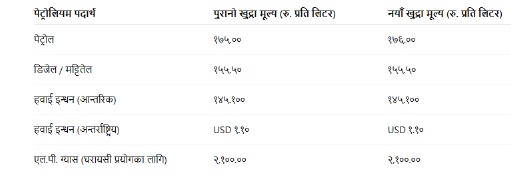 इन्डियन आयल कर्पोरेशनबाट प्राप्त नयाँ दर अनुसार पेट्रोलको मूल्य प्रति लिटर १.१६ रुपैयाँले वृद्धि भएको छ भने डिजेल र मट्टितेलको मूल्यमा प्रतिलिटर ०.०१ रुपैयाँको न्यून वृद्धि भएको छ। अन्तर्राष्ट्रिय बजारमा कच्चा तेलको मूल्यमा निरन्तर वृद्धि भइरहेकाले उक्त वृद्धि नेपालमा समेत प्रभाव पारेको निगमले जनाएको छ।